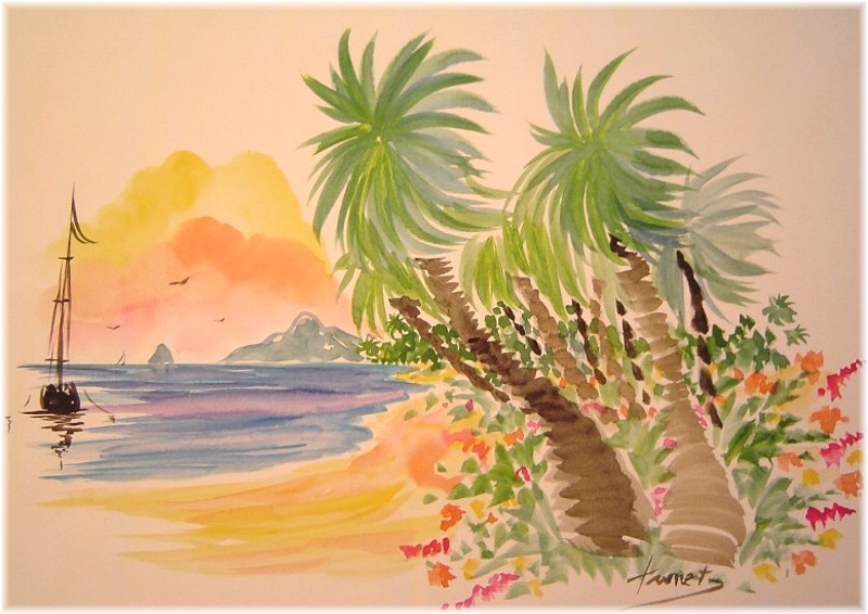 Aquarelle : Le Rocher du Diament  -  Marcel TRONET  -  Martinique    -  Son site : www.marceltronet.com